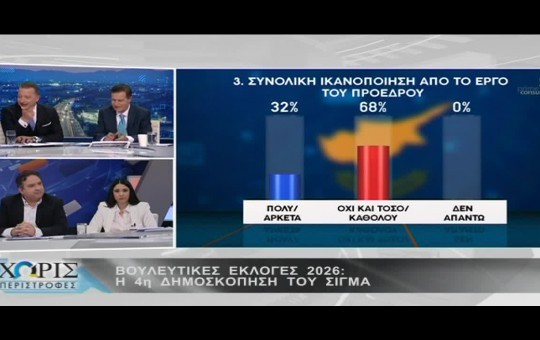 Στο στούντιο οι εκλογολόγοι Παναγόπουλος και Ορεινός, ο Χρύσανθος Τσουρούλλης και εκπρόσωποι κομμάτων. Συντονίζει ο Γιάννης Καρεκλάς.